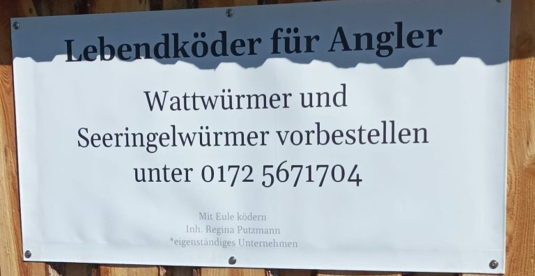 Bitte die Bestellungen für größere Mengen Wattwürmer bis Montags 14 Uhr aufgeben, Donnerstags bekommen wir dann die Wattis und Ihr könnt sie, im Laufe der Woche, abholen.